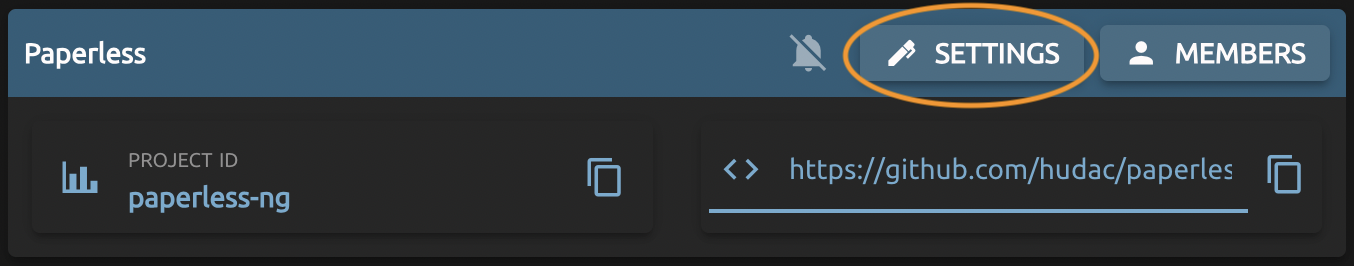 If you do not need a Project anymore, you can delete it. To do this, navigate to the Settings of the Project to be deleted: